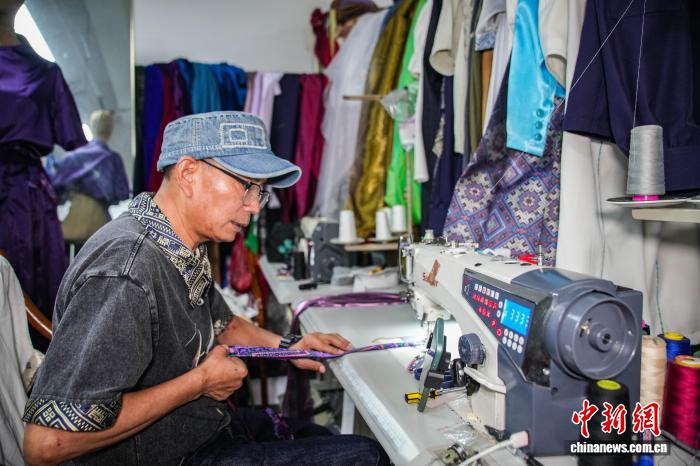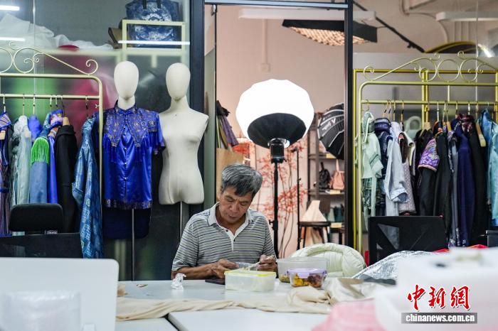 图为扬江诚正在任务室内乱停止缝纫。中新社记者 旧冠行 摄
