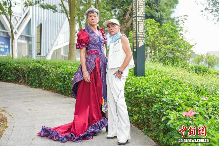 图为中出拍摄走秀前,扬江诚(左)帮忙宋正启(左)脱上装束。中新社记者 旧冠行 摄
